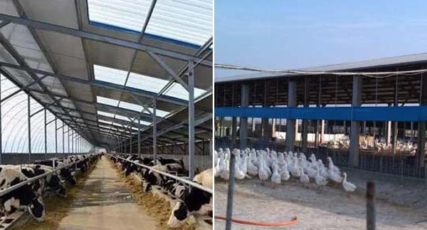 簡(jiǎn)單理解,就是農(nóng)光互補(bǔ)項(xiàng)目,在同一塊土地,上面用太陽(yáng)能發(fā)電;下面是農(nóng)田(或大棚、養(yǎng)殖廠(chǎng)、牧廠(chǎng)),用來(lái)種植或養(yǎng)殖,“一地兩用”,最大化地利用了土地資源,增加收入。