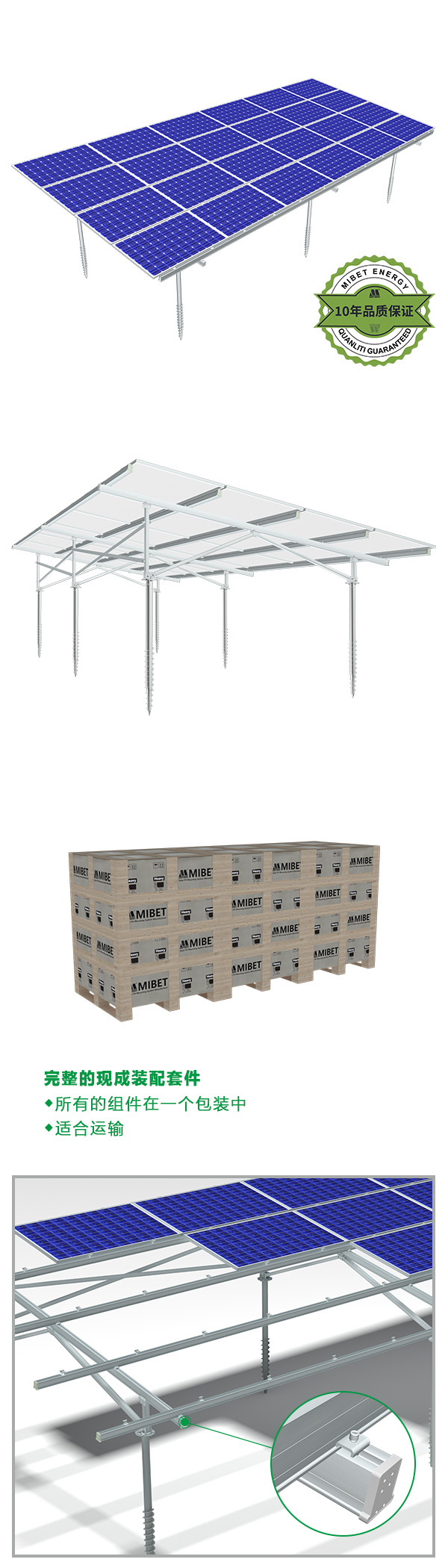 MRac 地面光伏支架系統(tǒng)TCGT4 該產(chǎn)品適用于抗風雪能力要求更高的安裝區(qū)域,具有高度預(yù)安裝特性,支架系統(tǒng)可前后、左右及上下方向上對進行調(diào)節(jié),適用于中大型光伏電站的安裝,專業(yè)的結(jié)構(gòu)設(shè)計在確保系統(tǒng)強度的前提下,有效的提高了工程安裝的時效,大大降低了安裝成本。