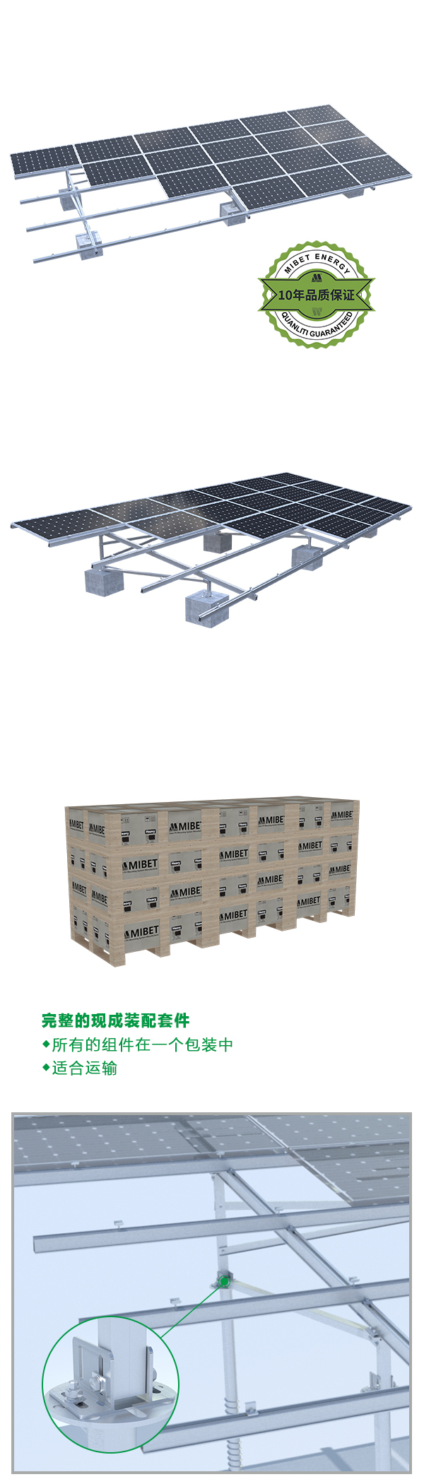 地面光伏支架系統(tǒng)NPGT4是 PGT4經(jīng)濟(jì)型的版本,在保證系統(tǒng)穩(wěn)固的情況下,針對(duì)風(fēng)雪壓力更低的環(huán)境特定開(kāi)發(fā),為中、小型光伏電站打造。根據(jù)PGT4的基礎(chǔ)調(diào)整縱梁、橫梁、立柱等結(jié)構(gòu)設(shè)計(jì),使整體系統(tǒng)的價(jià)格更具優(yōu)勢(shì)。預(yù)組裝支架方便現(xiàn)場(chǎng)安裝,縮短施工時(shí)間,實(shí)現(xiàn)經(jīng)濟(jì)效益。