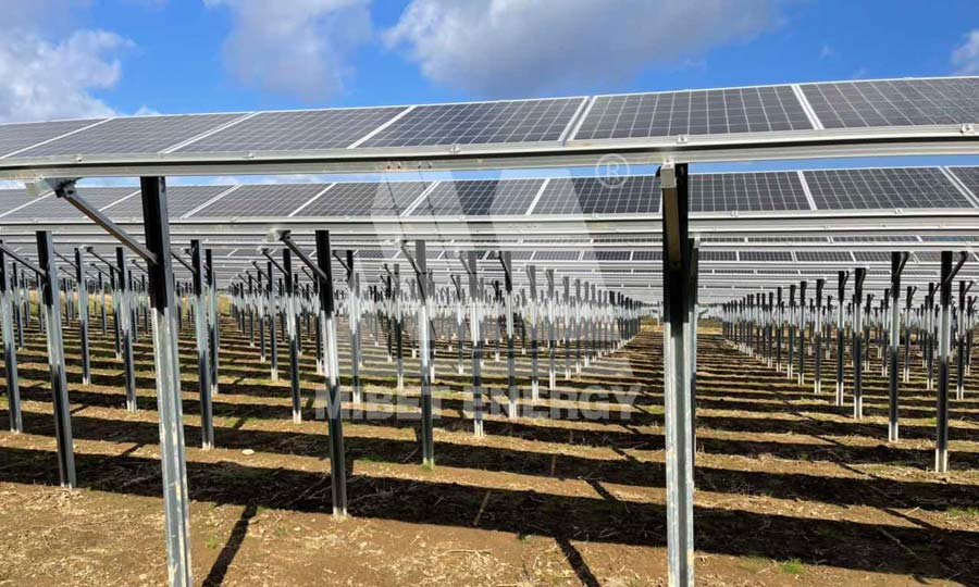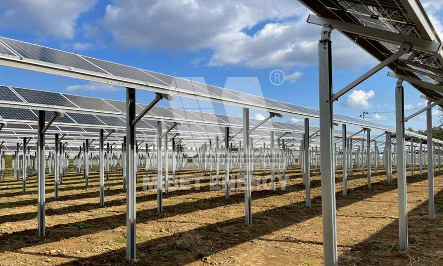 該電站采用邁貝特自主研發(fā)的“農(nóng)光互補(bǔ)支架系統(tǒng)”——一款將光伏支架系統(tǒng)與農(nóng)業(yè)種植大棚完美融合的產(chǎn)品。該系統(tǒng)已經(jīng)通過TUV專業(yè)測試并取得相應(yīng)報告,主體為鋁合金材質(zhì),按照大跨距結(jié)構(gòu)進(jìn)行設(shè)計,絲毫不影響農(nóng)業(yè)機(jī)械設(shè)備的日常操作。立柱可根據(jù)項目需求選用合適的方管,多種方管無縫切換,在大跨距結(jié)構(gòu)下仍然擁有出色的承重性能。具有獨(dú)家專利的T型卡槽,搭配立柱、接頭、后斜拉撐,可實現(xiàn)大棚支架的靈活調(diào)整,有效減少施工隊的安裝時間。
